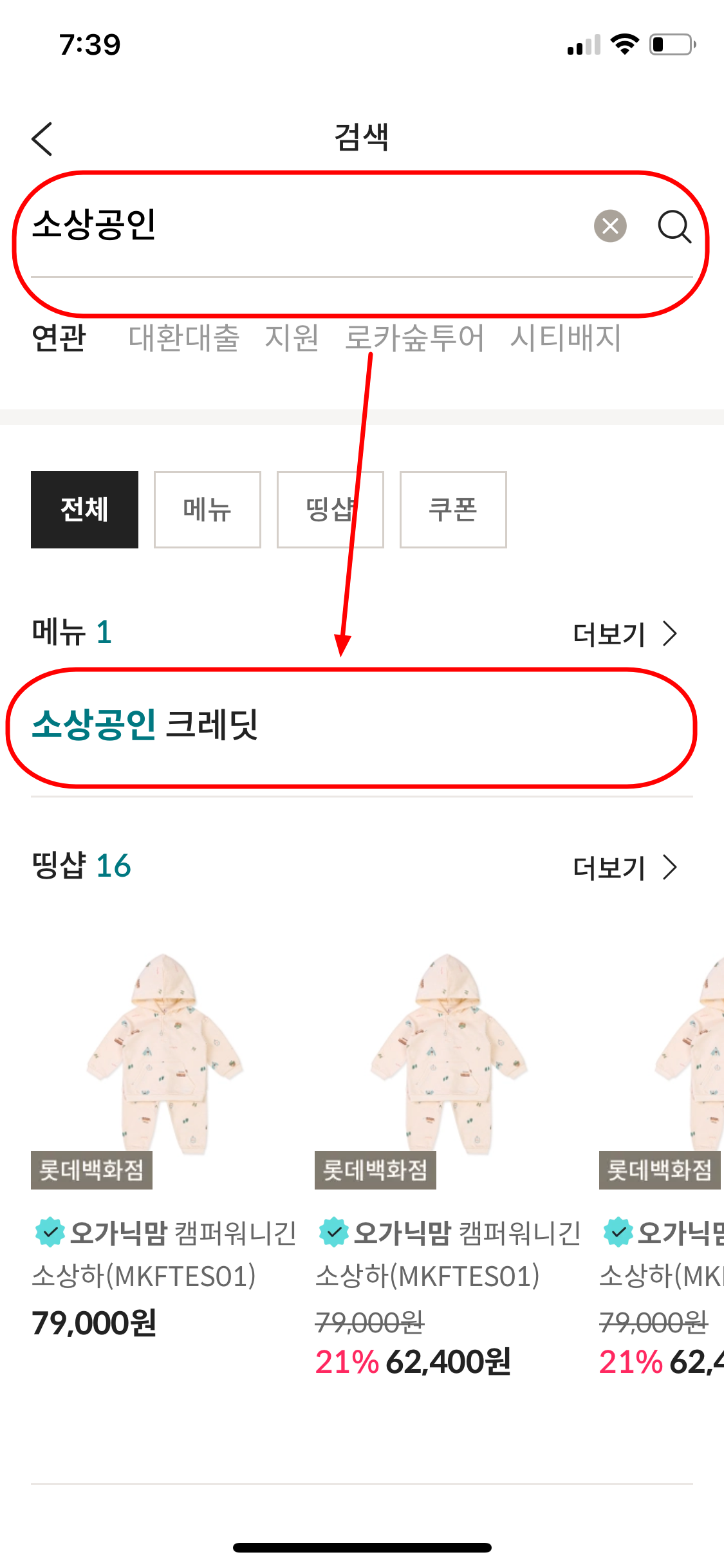 필자는계속 부담경감 크레딧이라고만 검색을 했는데, 롯데카드에서는 소상공인으로 검색어를 설정해 두었더라구요.