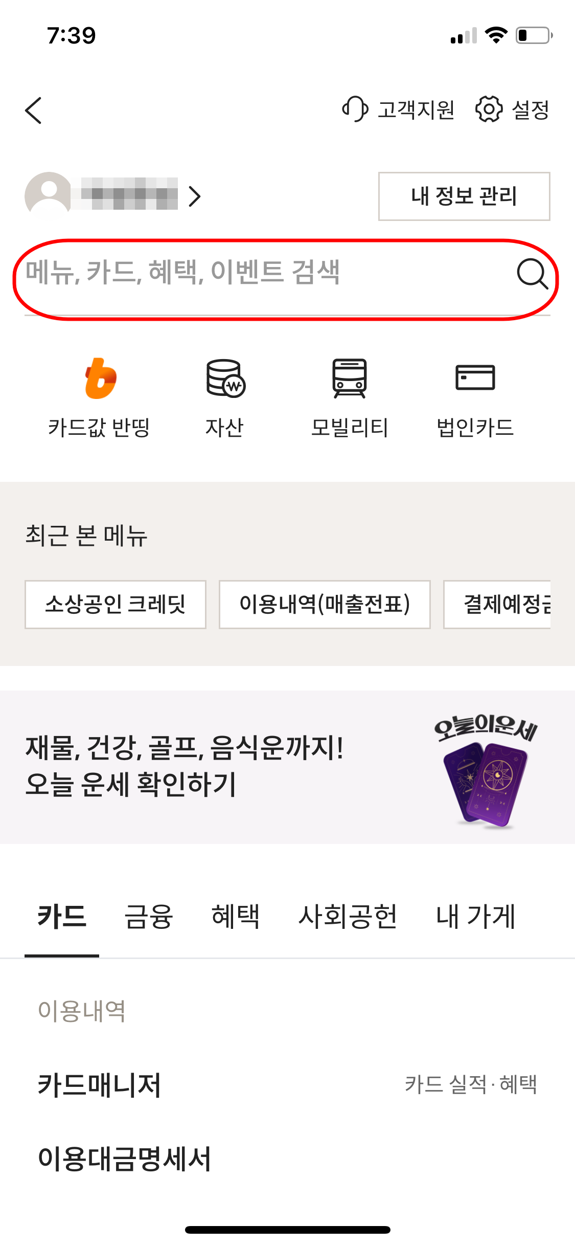 롯데카드를 사업자 카드로 주로 쓰기 때문에 롯데카드 앱이 깔려있어요. 요즘엔 앱에 들어가서 필요한 업무를 보는게 가능하잖아요. 그래서 사용내역을 요리조리 찾아봤는데 안보이더라구요. 그래서 고객센터에 문의해서 찾았습니다.