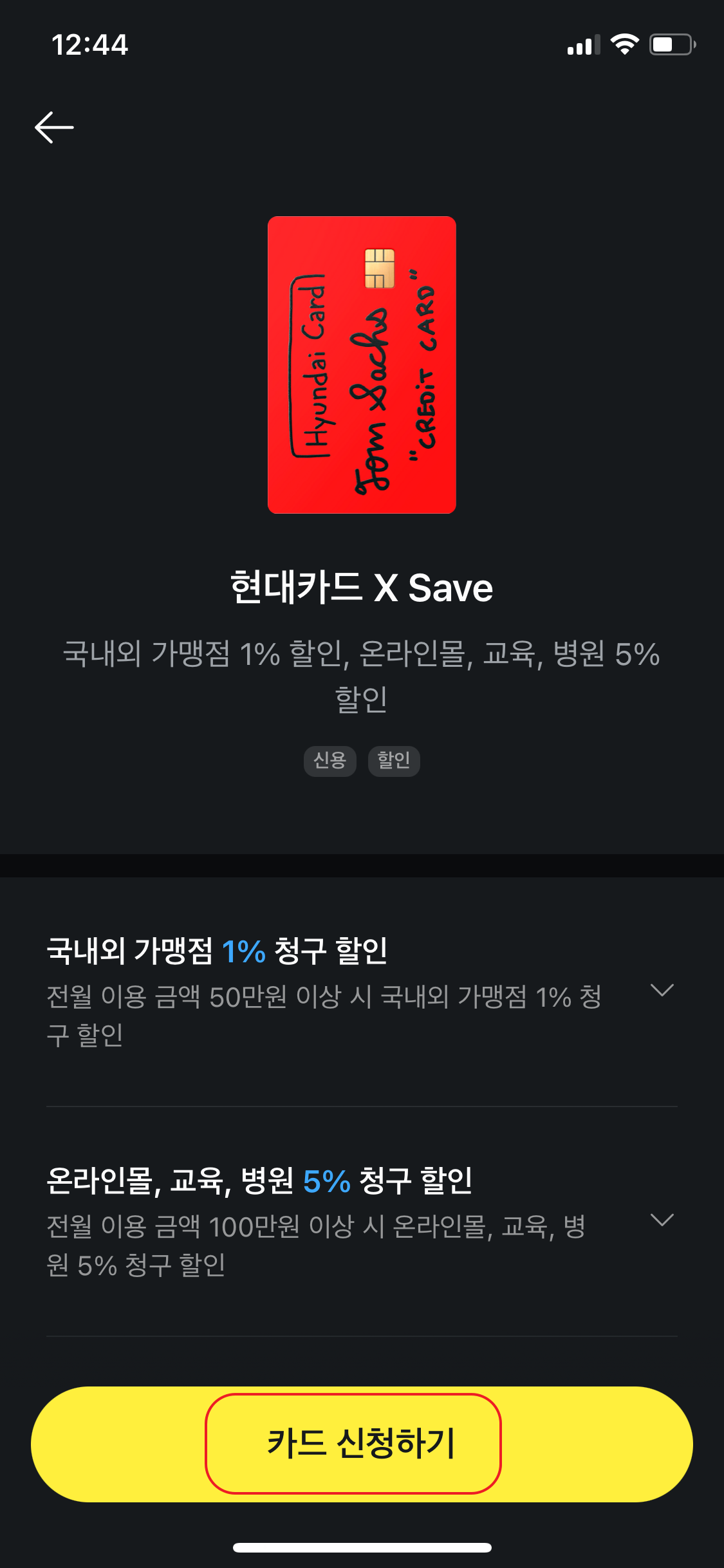 혜택 내역과 맨 하단의 주의사항 등을 한번씩은 꼭 읽어보시길 추천드려요. 의외로 이런 조건이나 주의사항을 놓쳐서, 카드 발급 후 혜택 자격이 안되어 못받으시는 분도 있더라구요. 카드사별 다 비슷비슷하니 처음 하시는 분들은 꼭 한번은 정독 해 보심을 추천드립니다.