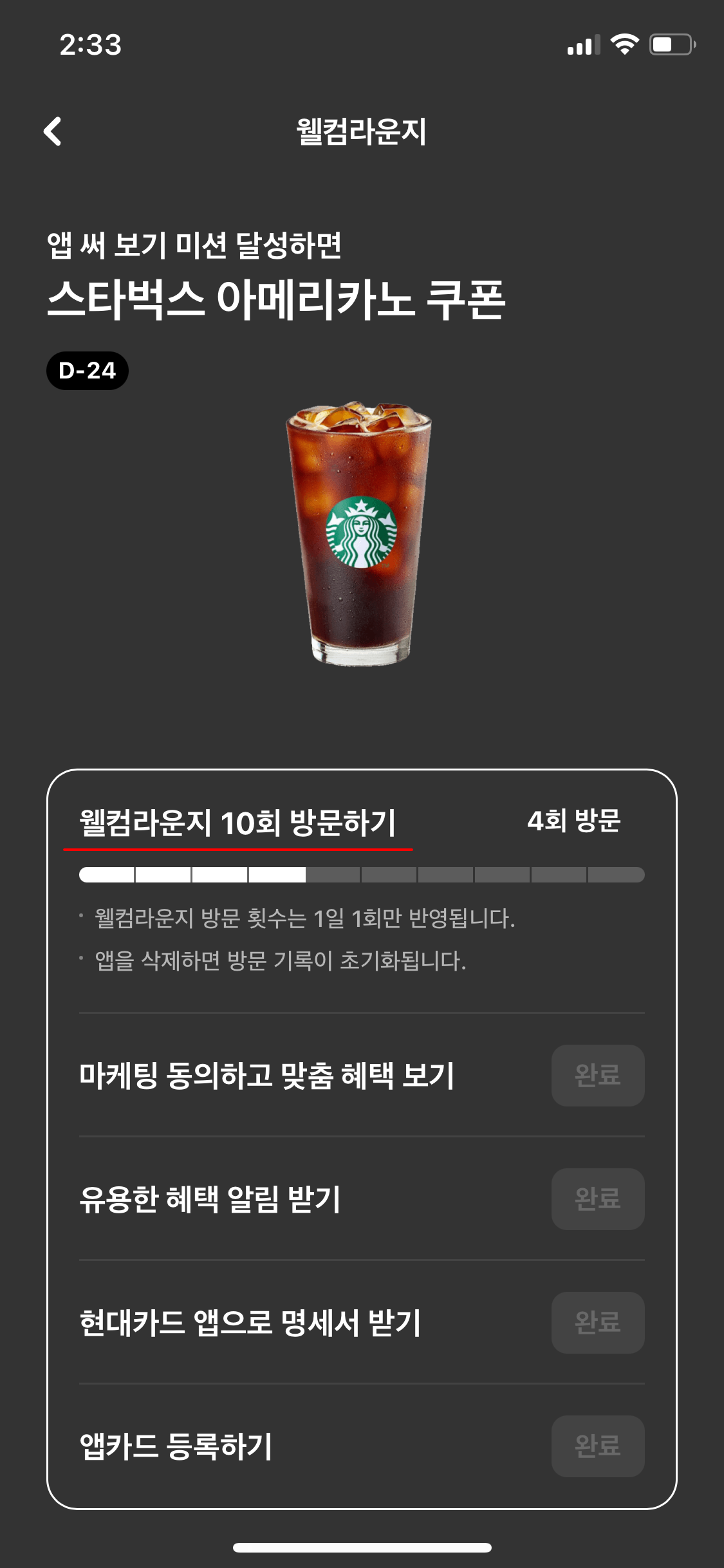 4. 현대카드 앱 내 웰컴라운지